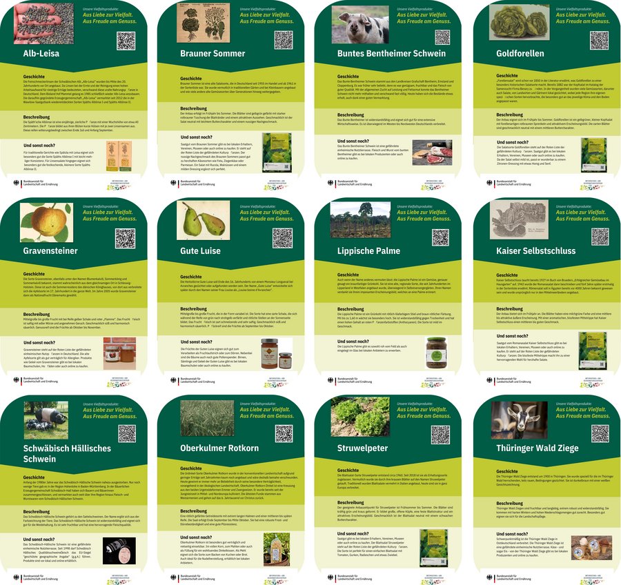 Diversity products are products from native and often endangered animal breeds, rare regional plant species and varieties, and native fish species and populations. With our stand at Green Week 2026, we want to educate consumers and help them discover diversity.